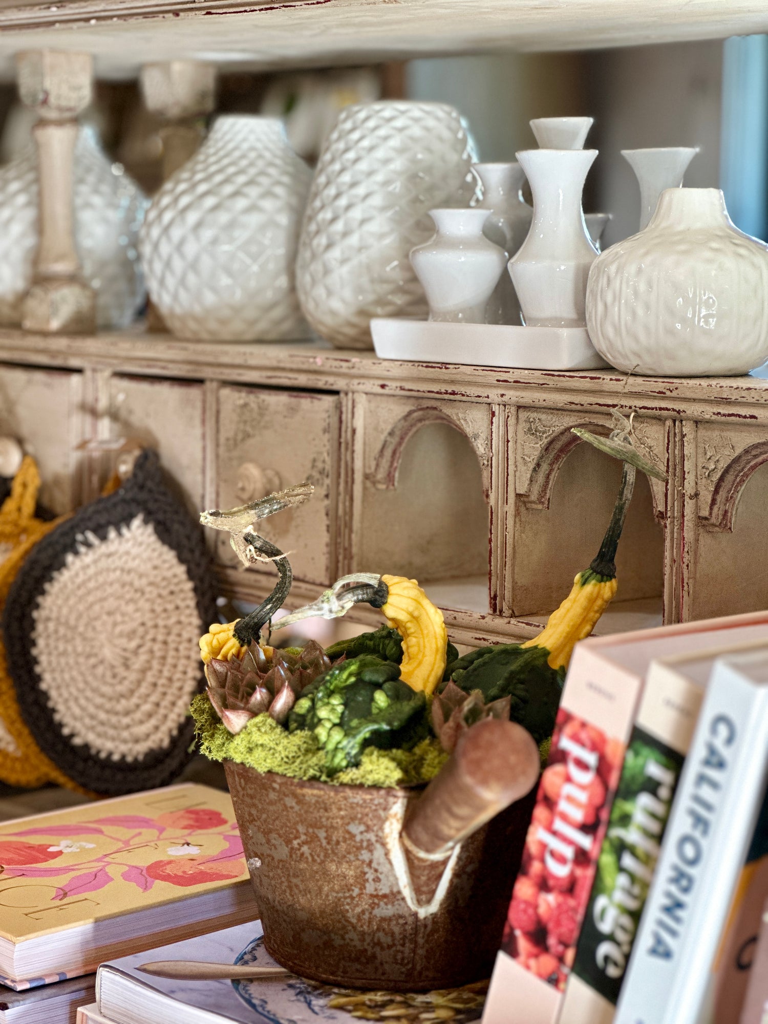 Infused with our love for gardening and the art of crafting welcoming outdoor retreats, discover our collection of rustic and vintage finds. Step out back at Olive and Oak and explore our space featuring pots, yard art, repurposed items, and more – All to inspire your beautiful outdoor haven!